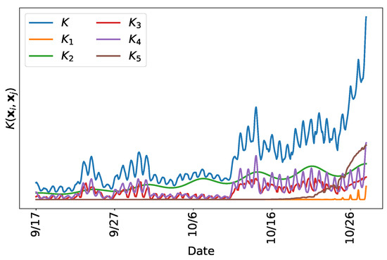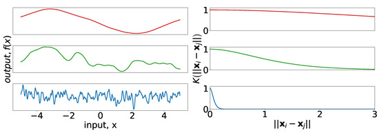 - Duvenaud, D.; Lloyd, J.R.; Grosse, R.; Tenenbaum, J.B.; Ghahramani, Z. Structure discovery in nonparametric regression through compositional kernel search. arXiv 2013, arXiv:1302.4922. [Google Scholar]