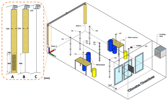 - Cao, G.; Awbi, H.; Yao, R.; Fan, Y.; Sirén, K.; Kosonen, R.; Zhang, J.J. A review of the performance of different ventilation and airflow distribution systems in buildings. Build. Environ. 2014, 73, 171–186. [Google Scholar] [CrossRef]