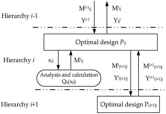 ATC is a modular and hierarchical optimization algorithm. Each level is composed of optimization design module P and analysis calculation module Q, as shown in Figure 3. The main purpose of the optimization design module P is to optimize the objective function, while the main purpose of the analysis calculation module Q is to calculate the elements. The information allocated at the above level is used as input, and the output information of the Q module is transmitted to the P module. The main idea of ATC is to distribute optimization objectives at different levels and then provide information as feedback from each sub-level system to the upper level, alternately optimizing until convergence is achieved.