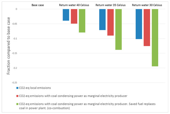 During 2016, TvAB commissioned another waste incineration plant with a production capacity of 83 MW and an electrical efficiency of 22.5%. In practice, this means that the economic benefits of lower return temperature are greatly reduced for TvAB. However, considering electricity market connections and fuel market connections, the potential for GHG emission reduction, with the actions proposed in this paper, still remains.