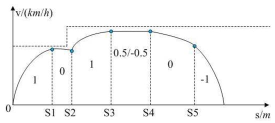 (1) There is no static speed limit falling interval and the corresponding diagram of train operation mode (recorded as train operation mode 1) is shown in Figure 1.
