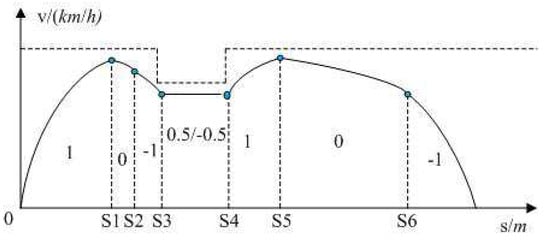 Any complex speed limit interval can be composed of the above three basic speed limit intervals, and the coding mechanisms of three basic speed intervals are also applicable to any complex speed limit interval. Based on previous research results, the following conclusion can be obtained. When the train keeps an idle running condition or a constant speed running condition as much as possible, the energy consumed by train is the least.