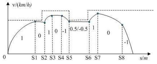 where represents the maximum running velocity allowed by each subinterval; is inflexion point of subinterval related to the line, it represents the starting point of the -th subinterval or the terminal point of the j-th subinterval.