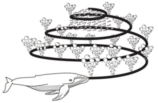 Diagram of humpback whale hunting behavior.