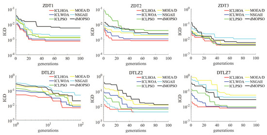 (4) The dual-population parallel evolution process, which uses the elite archive set as the information communication medium, can greatly improve the computational efficiency and improve the global convergence performance of ICLHOA.