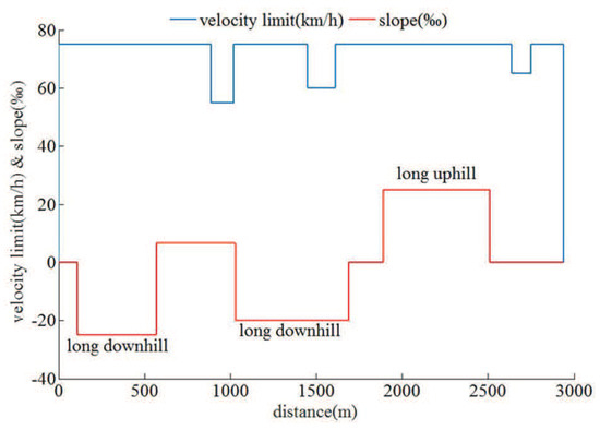 Rail transit has the characteristics of large transport volume, energy saving, environmental protection, comfort, safety, punctuality, reliability, fast and convenient. Vigorously developing rail transit is particularly important for improving people’s living standards. The application of automatic train oeration (ATO) system can greatly improve the operation efficiency of rail transit. Enabling the function of automatic velocity adjustment in the course of train operation will make the train in the optimal working state as much as possible. Therefore, velocity adjustment is the core unit of ATO and it is an important component of the train optimization and control system [1,2]. The ATO system has the function module of target velocity trajectory profile optimization, which depends on multi-objective optimization of train operation process. It can obtain the target velocity trajectory profile that pleases the decision maker, which takes into account the optimization indexes such as energy consumption, comfort, parking accuracy and running time.