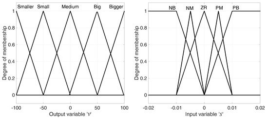 which has the structure presented in Figure 9, and has control gain . The membership functions of the AHN are presented in Figure 10.