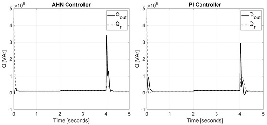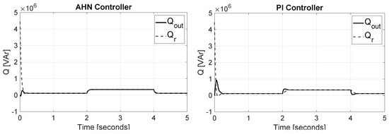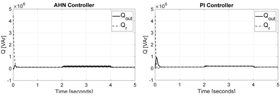 The simulation results of Test 1 are presented in Figure 15, for the system with the AHN controller and PI. Reactive regulation is accomplished with both controllers, despite the effect of the voltage sag at s. However, the transient response of the system with PI presents a overshoot five times bigger than the system with AHN controller.