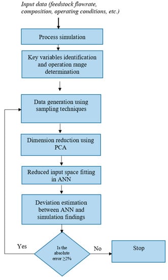 The overall methodology of this work consists of six steps that include simulation, variable, and operating range identification, data generation using sampling techniques, dimension reduction, space fitting, and deviation estimation. Figure 2 shows the sequential framework adapted to develop a surrogate model for stabilization unit.