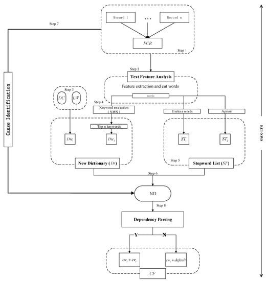 Briefly, extracting root cause text is divided into the following steps: identify the irrelated nouns; eliminate stopwords; require the suggested useful words; and clear the useful words to obtain the aim of our study. According to these steps, the root cause text should be extracted more precisely.