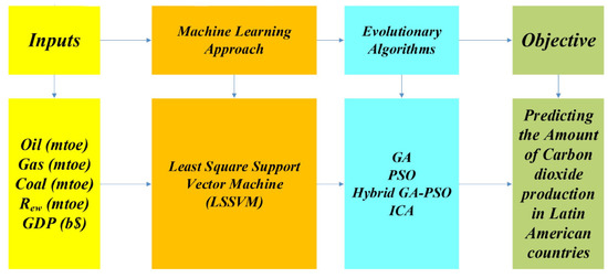 Modelling the CO emission in order to predict the influence of other factors such as utilized energy will be helpful for researchers and policy makers to have a broad vision about future energy demand, which is entwined with a sustainable environment. The amount of CO production of a country is highly affected by some factors such as the transportation system, the efficiency of power plants and specifically the energy consumption pattern of residents [7,8,9,10]. Ruiz-Mendoza an Sheinbaum-Pardo [11] analysed the effect of reforms performed on the electricity generation sector and their effect on carbon dioxide production in Latin American countries. The authors monitored 1990–2006 and reported that, except Columbia, which increased its capacity for renewable energies, specifically in the hydropower sector, the other countries in this region decreased the installation capacity of renewable sites. Therefore, the amount of CO emission has remained almost constant in other countries. Jardon et al. [12] proposed an empirical correlation between the production of carbon dioxide (per capita) and economic issues. In this study, the authors analysed the validation of the hypothesis that in long-term periods, economic growth would be possible if environmental issues are addressed, as well, and rejected this statement for Caribbean and Latin countries. Zaman and Moemen [13] carried out an investigation to analyse the relation between utilization of renewable energies, fixed cropland, the technology of exporting, health issues and CO production in 14 selected countries in Latin and Caribbean countries. It was found out that fixed cropland and electricity production from fossil fuels have a negative effect and increase the amount of CO production, while utilization of renewable technologies and using high-level technologies lower the negative impacts on the environment. Hanif [14] analysed the impact of fossil fuel consumption, electricity generation, the amount of imported oil and urbanization on the energy-environment-economic nexus in Latin American countries (1990–2015). It was concluded from the findings that it is necessary for these countries to develop and apply renewable energy programs to increase the quality of their environment and also decrease their dependency on oil importing.