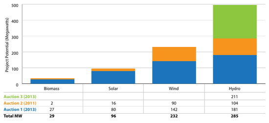 - IEA. Argentina Renewable Energy Auctions; Technical Report, RenovAr Program (Round 1). Available online: https://www.iea.org/policiesandmeasures/pams/argentina/name-158884-en.php (accessed on 11 May 2019).