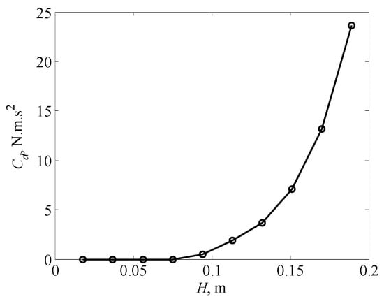 The drag torque coefficient as a function of wave height at T = 1.6 s and c = 12 N·m·s/rad.