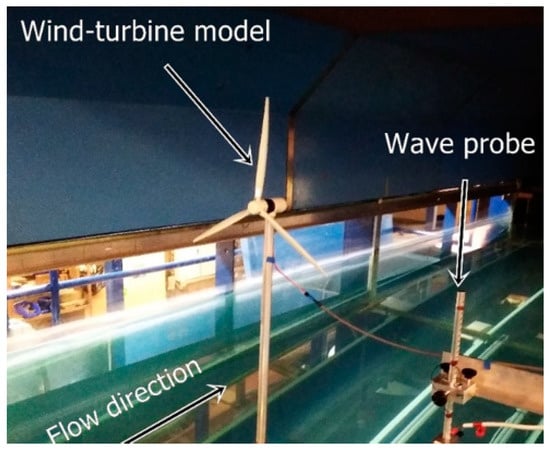 Secondly, the effectiveness of the proposed concept motion stabilizer was tested experimentally. The laboratory tests were conducted in the wind–wave–current tank at Newcastle University. The tank size is 11 × 1.8 × 1.0 m. The central measurement section is 3.0 × 1.8 × 1.0 m with surrounding glass walls for facilitating observation. The testing capabilities of the tank are listed in Table 5.