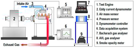 Experiments in this study were conducted with a four-cylinder, common-rail, high-pressure turbocharged diesel engine. The specifications of the test engine are depicted in Table 3, while Figure 1 shows the illustration of the experimental set-up. To analyse the fuel combustion process, a Kistler 6058A piezoelectric sensor was employed in the engine to monitor the in-cylinder pressure. The pressure sensor signal was sent to a data acquisition unit (DAQ) after amplification using a DAQ-Charge-B charge amplifier. For each test point, data from 100 successive engine cycles were recorded and analysed. On the other hand, exhaust emission measurements were carried out using an AVL gas analyser and a portable smoke opacity meter. The engine was programmed to operate at a constant speed of 2000 rpm with engine torque varying between 20 and 120 Nm in 20 Nm increments.