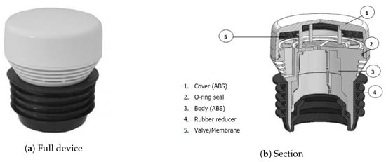 They were passive normally closed air admittance valves from the plumbing market. A rubber membrane contained in the valve obstructs the opening of the valve due to gravity. When sufficient pressure is applied, the rubber membrane is lifted up, and the valve opens. Their opening pressure is 70 Pa (equivalent to 1686 Pa at full scale), and their light weight allowed their use in the small-scale Tupperwave physical model.