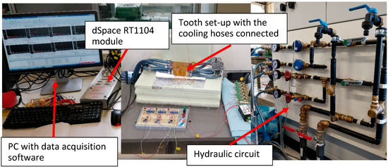 Complete measurement set-up and the hydraulic circuit used for cooling.