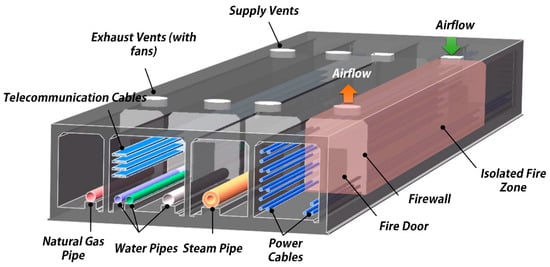 - Ko, J. Study on the Fire Risk Prediction Assessment due to Deterioration contact of combustible cables in Underground Common Utility Tunnels. J. Korean Soc. Disaster Inf. 2015, 11, 135–147. [Google Scholar] [CrossRef]