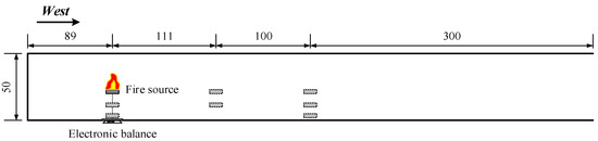 | Test No. | Ambient Temperature T∞ (°C) | Fuel Type | Fuel Pan Size (cm × cm × cm) | Horizontal Distance from East End (m) | Ceiling Clearance, H (m) | East End | West End |