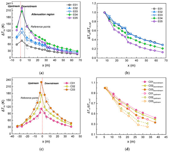 3.2.2. Longitudinal Maximum Gas Temperature Decay