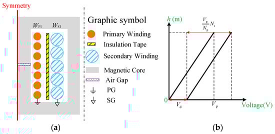 A transformer with a single layer of the primary and the secondary winding is used to illustrate this phenomenon, as shown in Figure 10a. Figure 10b shows the voltage potential distribution of the primary and secondary winding and their expression can be given as follows