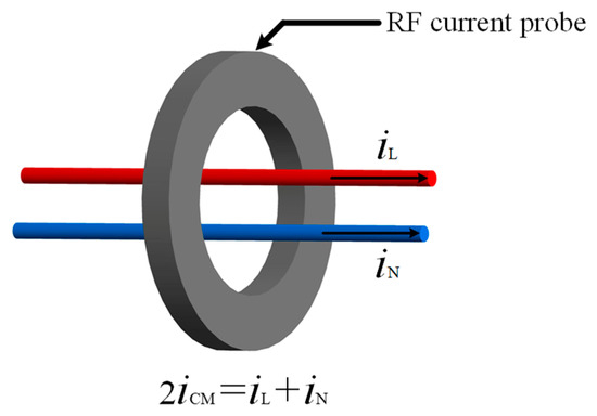 In order to decouple EMI noise into CM noise and DM noise, the traditional measurement method is to use a noise separator, which is a voltage measurement method. However, the current measurement method is also feasible. For a better and clear understanding, the following will introduce how to use radio frequency (RF) current probe to separate the CM noise from the total EMI noise. Figure 18 shows the CM current measurement method. The CM current flowing through L and N lines are in the same direction. Therefore, using R & S EZ-17 radio frequency current probe can precisely measure the CM current and the measured signal can be transmitted into EMI receiver to be transformed into CM noise spectrum. The test environment is electromagnetic shielding chamber. EMI receiver is R & S ESCI and LISN is R & S ESH2-Z5.