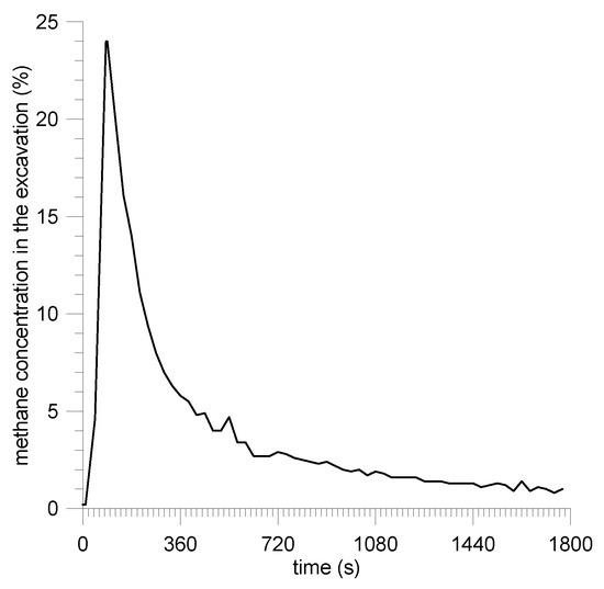Methane concentration in the excavation after Zofiówka outburst.