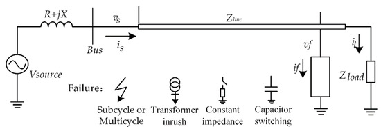 In this paper, all data are obtained in PSCARD/EMTDC. (Subcycle and multicycle failure have the same symbol, but the duration time is different.) The 25 kV circuit model of the cable current signal is displayed in Figure 4, and the sampling frequency is set to 10 kHz.