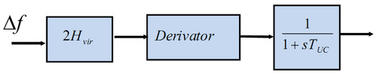 The Ultra-capacitors plays an important role in increasing the virtual inertia of the network, either by power injection or by absorption. The network exchange power of the Ultra-capacitor is directly related to the derivation of frequency fluctuations. These units have very little delay in response to frequency oscillations. Thus, the dynamic model of ultra-capacitors can be illustrated in Figure 5 [27].