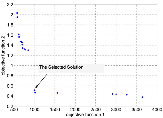 The NSGA-II algorithm is used in this paper. The first goal is reducing the frequency fluctuations of the microgrid. Equation (7) is considered for this aim. The algorithm attempts to minimize (7) so the frequency oscillation will be in a minimum state. In addition, the second goal is determining the minimum ultra-capacitor size and the delay value of telecommunication systems to reduce the microgrid infrastructure cost. For a low ultra-capacitor size and the high delay value of telecommunication systems, the operation cost will be low. These two goals are expressed in two separate objective functions as below: