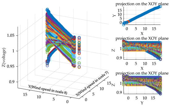 In recent years, the growth rate of wind power installed capacity has been rapid [1]. However, the consumption of wind power has restricted its development seriously [2]. Both the randomness and volatility of wind power have a great impact on the operation of a system [3], especially with respect to the problem of voltage beyond limits. In addition, there is a complex correlation of wind speed in different regions, especially a positive correlation [4,5], which causes serious voltage fluctuation problems. Therefore, the study of voltage state assessment with large-scale wind power integration is of great significance, and we must consider the uncertainty and correlation of wind speed in different regions.