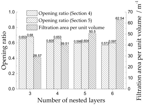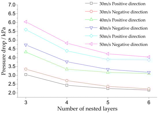 4.1. The Effect of the Number of Nested Layers on the Pressure Drop