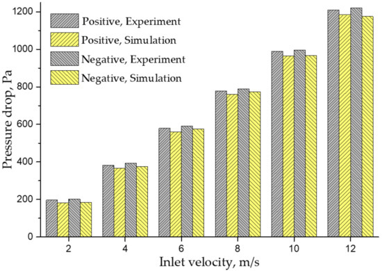 | Inlet Velocity, m/s | Pressure Drop, Pa | |