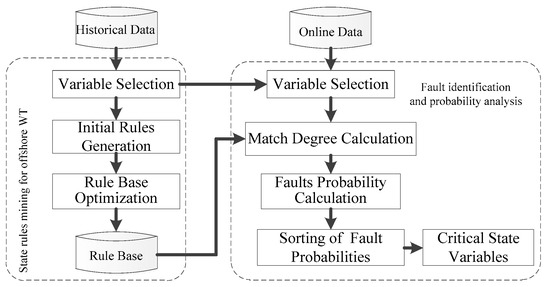 Flow chart of fault identification and probability analysis for offshore WTs.