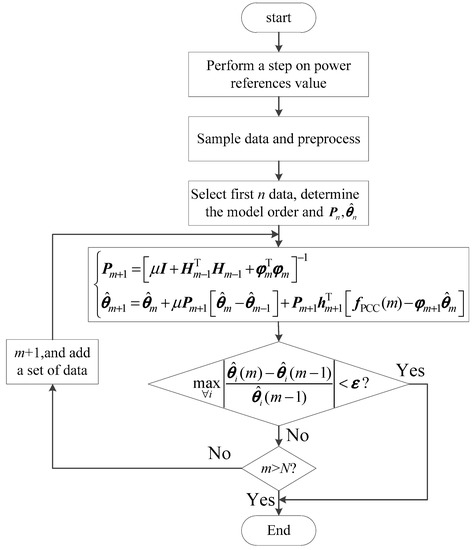 On the other hand, most identification modeling methods are suitable for fixed microgrid structure, and off-line identification strategies can be employed to model microgrid system [16]. Although under some circumstances (such as similar power supply characteristics, operation mode is basically fixed, etc.), off-line identification has certain applicability, but for the common microgrid structure, there is a random change in power output and load switching, which makes the applicability of this method greatly being challenged. If the online identification method is adopted in identifying microgrid model, the real time update of the model parameters can make up for this deficiency. Nowadays, on-line identification methods are usually adopted in asynchronous motor parameters’ identification [17,18], while application of these methods being adopted in microgrid system modeling has not yet been found in literatures.