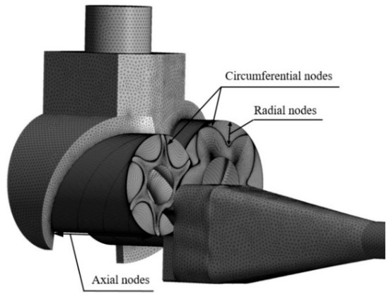 Since the number of cells will affect the simulation results, this paper used meshes of different parameter settings in TwinMesh for the simulation. Figure 3 shows the control volume cells of the experimental compressor. The simulation results under different parameters are shown in Table 2.