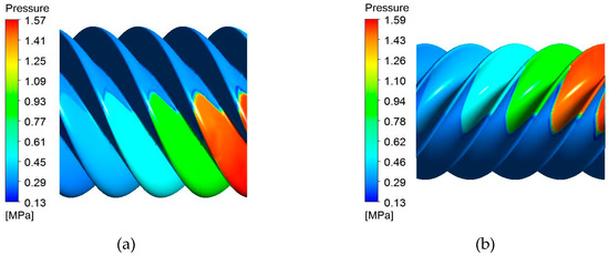 The pressure distribution of the rotors surface. (a) Male rotor; (b) Female rotor.