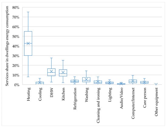 Average values of services share in dwellings energy consumption.