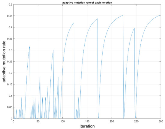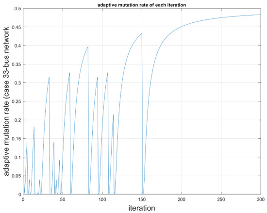 Adaptive mutation rate in each iteration (case 33-bus network).