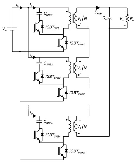 - Pagliosa, M.; Faust, R.; Lazzarin, T.; Barbi, I. Input-series and output-series connected modular single-switch flyback converter operating in the discontinuous conduction mode. IET Power Electron. 2016, 9, 1962–1970. [Google Scholar] [CrossRef]
