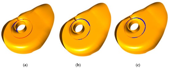 Bubble formation in suction domain at different flow rates: (a) NPSH3% at 0.6Qd; (b) NPSH3% at 1.0Qd; (c) NPSH3% at 1.2Qd.
