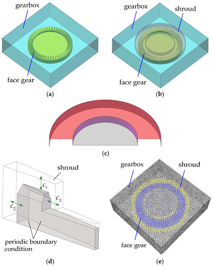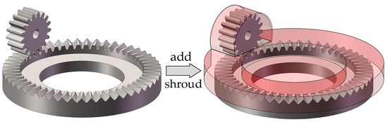 - The shroud can significantly reduce the windage losses of face gears. The distance from the shroud to the gear body in three directions has an effect on the windage losses, including the distance from the shroud to the tooth addendum, the distance from the shroud to the outer radius and the distance between the shroud and the inner radius.