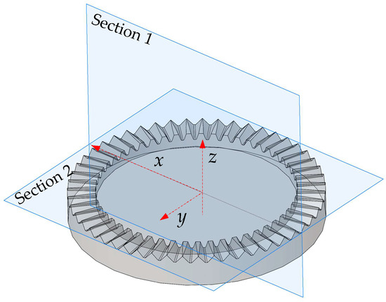 - Litvin, F.L.; Fuentesm, A.; Howkins, M. Design, generation and TCA of new type of asymmetric face-gear drive with modified geometry. Comput. Methods Appl. Mech. Eng. 2001, 190, 5837–5865. [Google Scholar] [CrossRef]