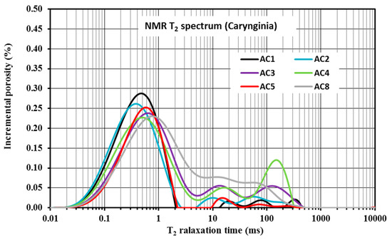 NMR T2 spectrum for Carynginia shales (i.e., AC1-AC8).