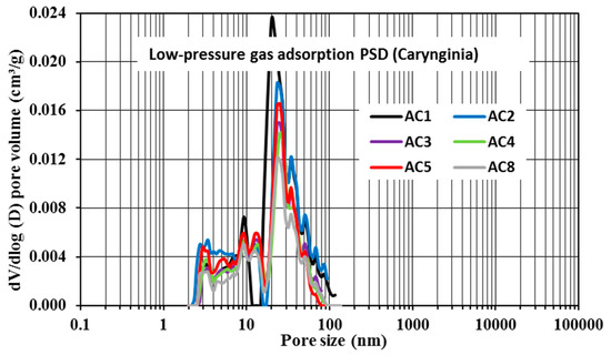 Carynginia pore size distribution (PSD) derived from low-pressure N2 gas adsorption based on BJH theory.