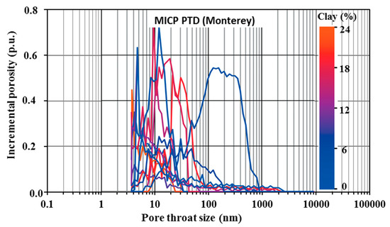 MICP pore throat size distribution (PTD) for Monterey shales. Modified from Saidian, Kuila [44].