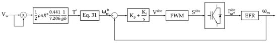 According to Equations (23) and (24), by a steady state the turbine torque, the electromagnetic torque of the EFR and the electromagnetic torque of the induction generator are equal. This allows the torque throughout the system to be controlled by the slip of the induction generator.