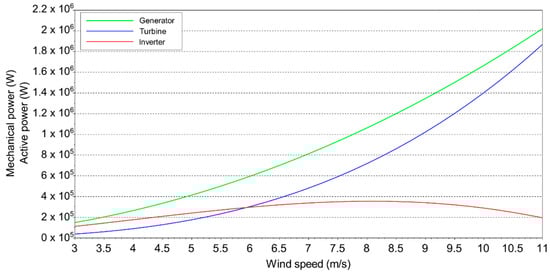 In relation to the data reported in [24], the turbine diameter and the nominal wind speed were adjusted to match the nominal turbine and machines power ratings.