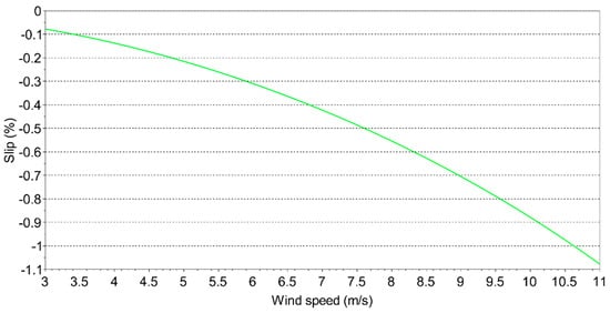The slip of the induction generator for each wind speed are sketched in Figure 6.