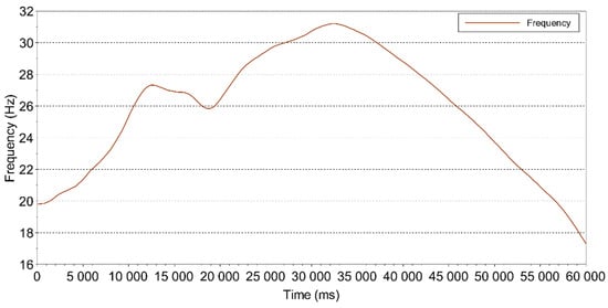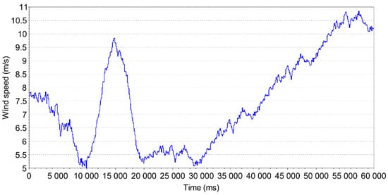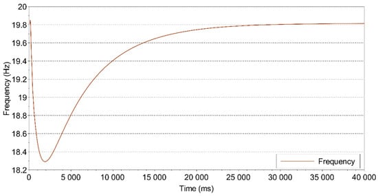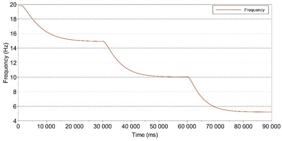 As described in the control strategy, the control variable that guides the speed to the desired value is the frequency of the current at the inverter output. The frequency variation due to the wind speed steps is sketched in Figure 8.